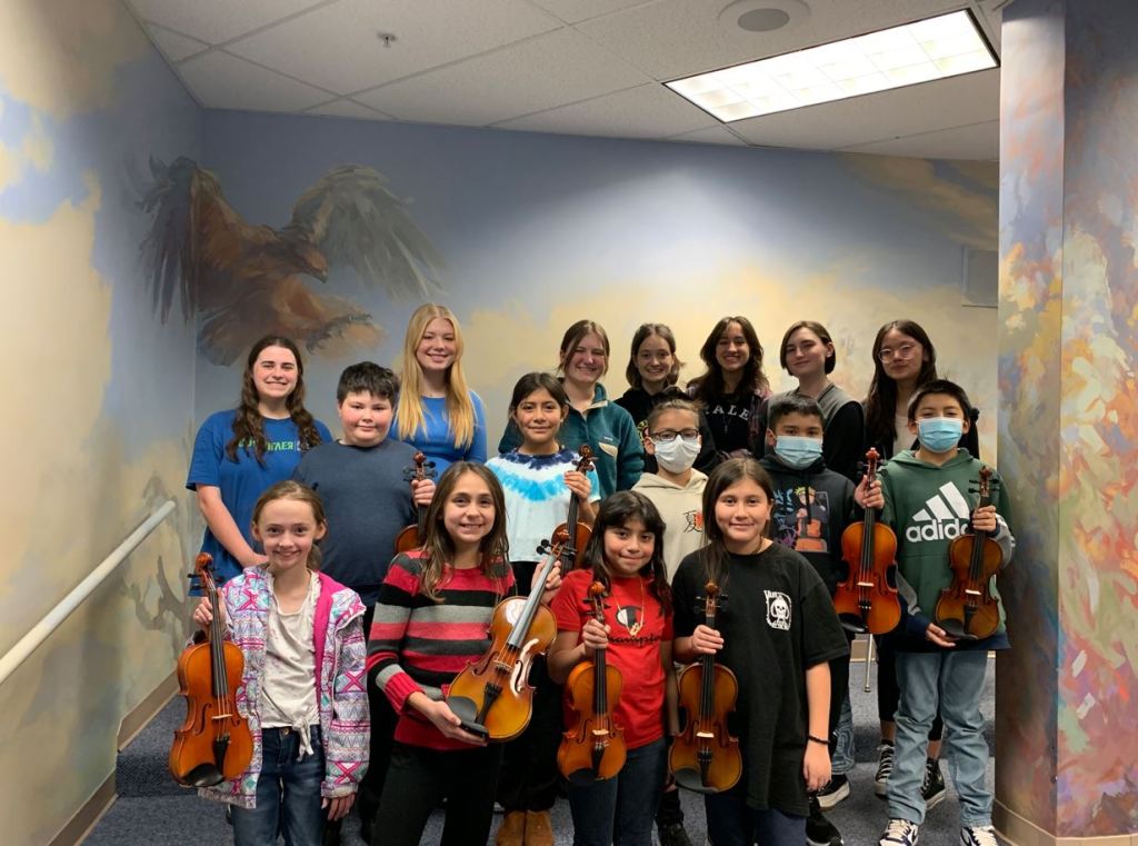 Our newest violin program, started in 2023, is led by Annie Lin and Zoe Merkley, teaching some of our youngest students!