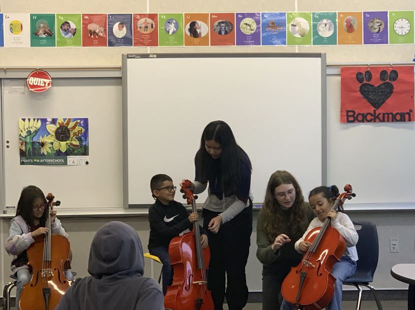 The Music Outreach Club from Skyline High School performed at Lincoln Elementary for 50+ students, helped them all try out violins, and continued our after-school program, with the help of Isaiah Ahn. Thanks to Ms. Deborah Peel, the after-school coordinator, for having us!