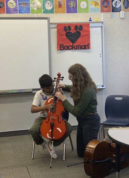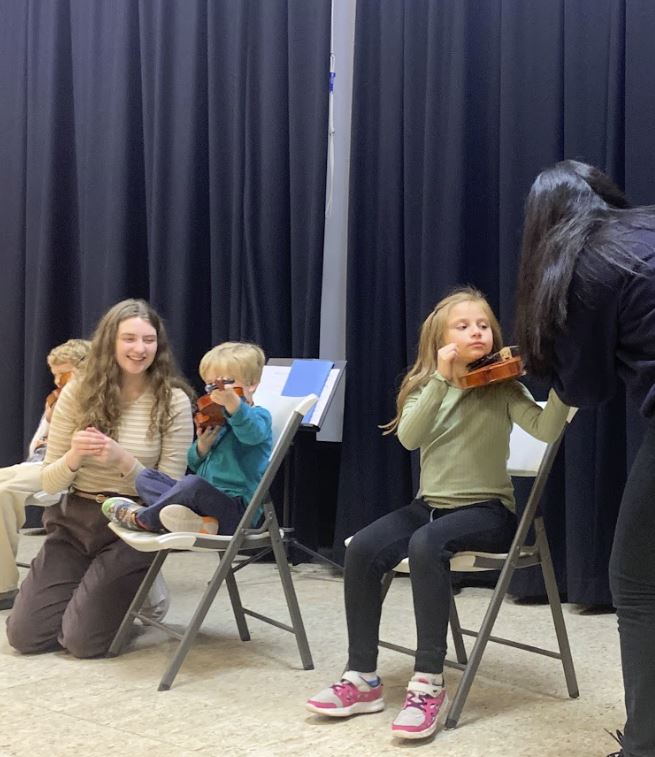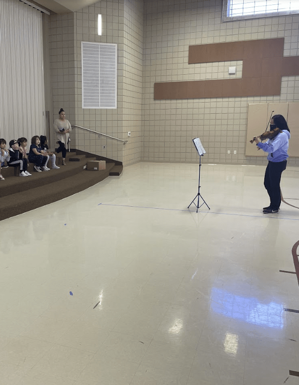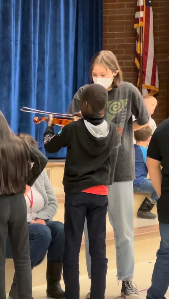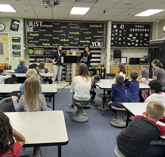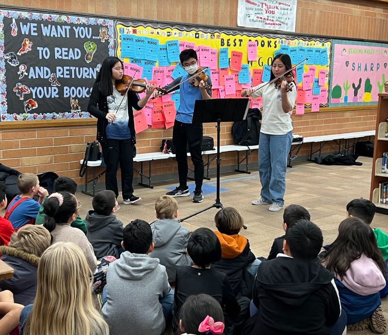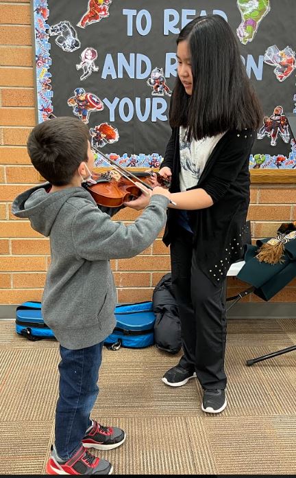 Audrey Su and Alice Leppert performed and taught violin for 15 students in the after-school program at Franklin Elementary. A big thanks to Ms. Saisha Lozano, the after-school coordinator, for helping us put together the performance, especially despite post-pandemic challenges.