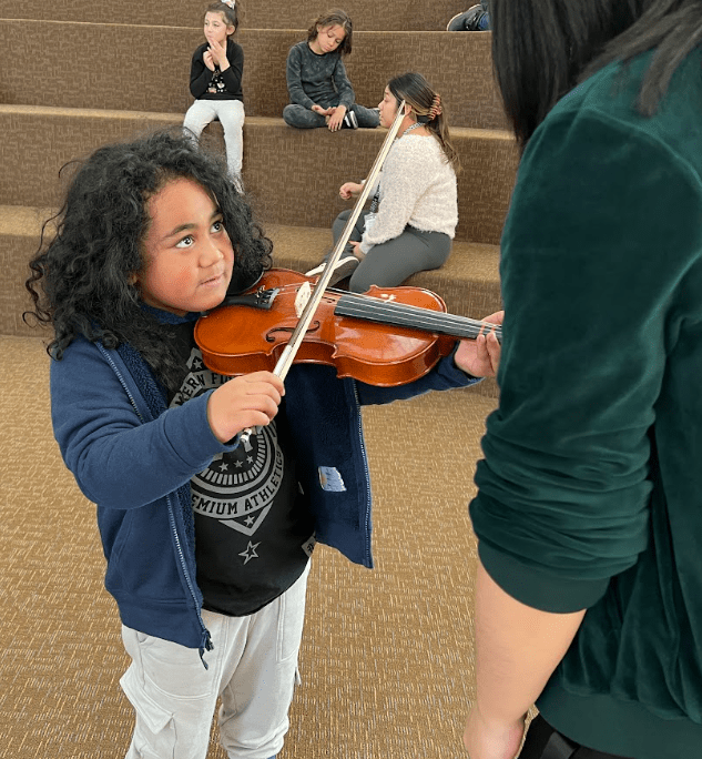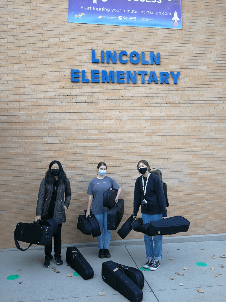 We’ve performed at over 20 Title I elementary schools throughout Utah (from St. George to Salt Lake City and Davis). We always bring violins and cellos for the kids to try out, hoping to inspire an early love for string instruments!