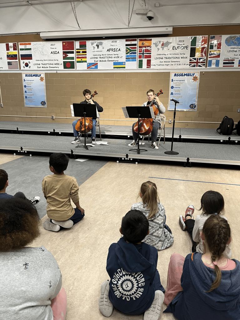 Kai McMullin and Atticus Bradley (Hillcrest High School) performed for the after-school program at East Midvale. We’ll be setting up a new cello program there next year, and a huge thanks to Ms. Shelley McCall for having us!